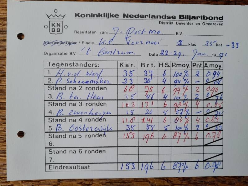 • Biljartkampioenschap 1992