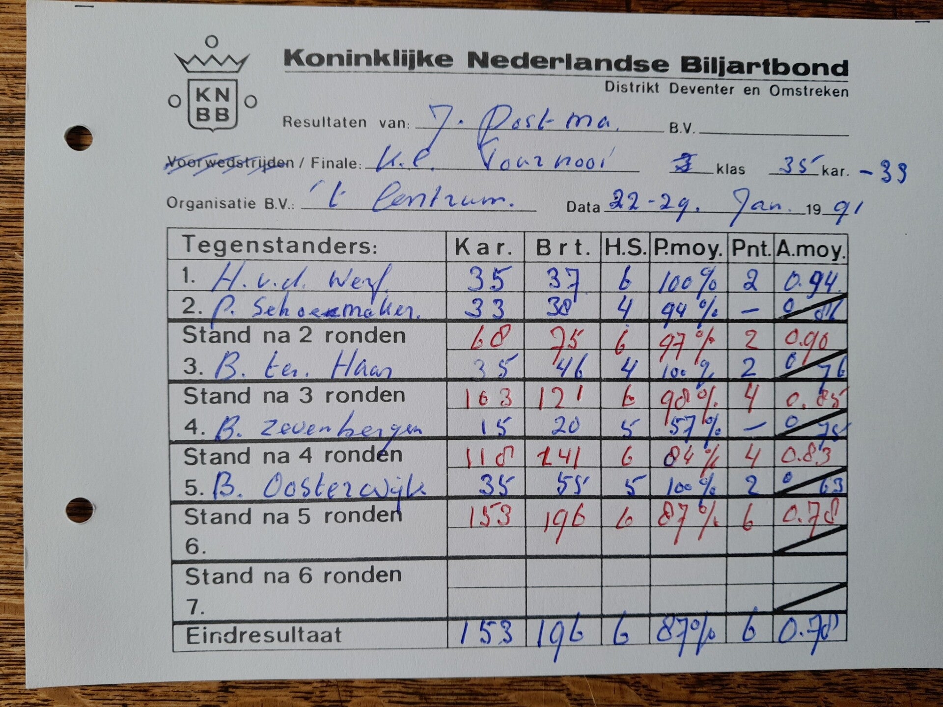 • Biljartkampioenschap 1991