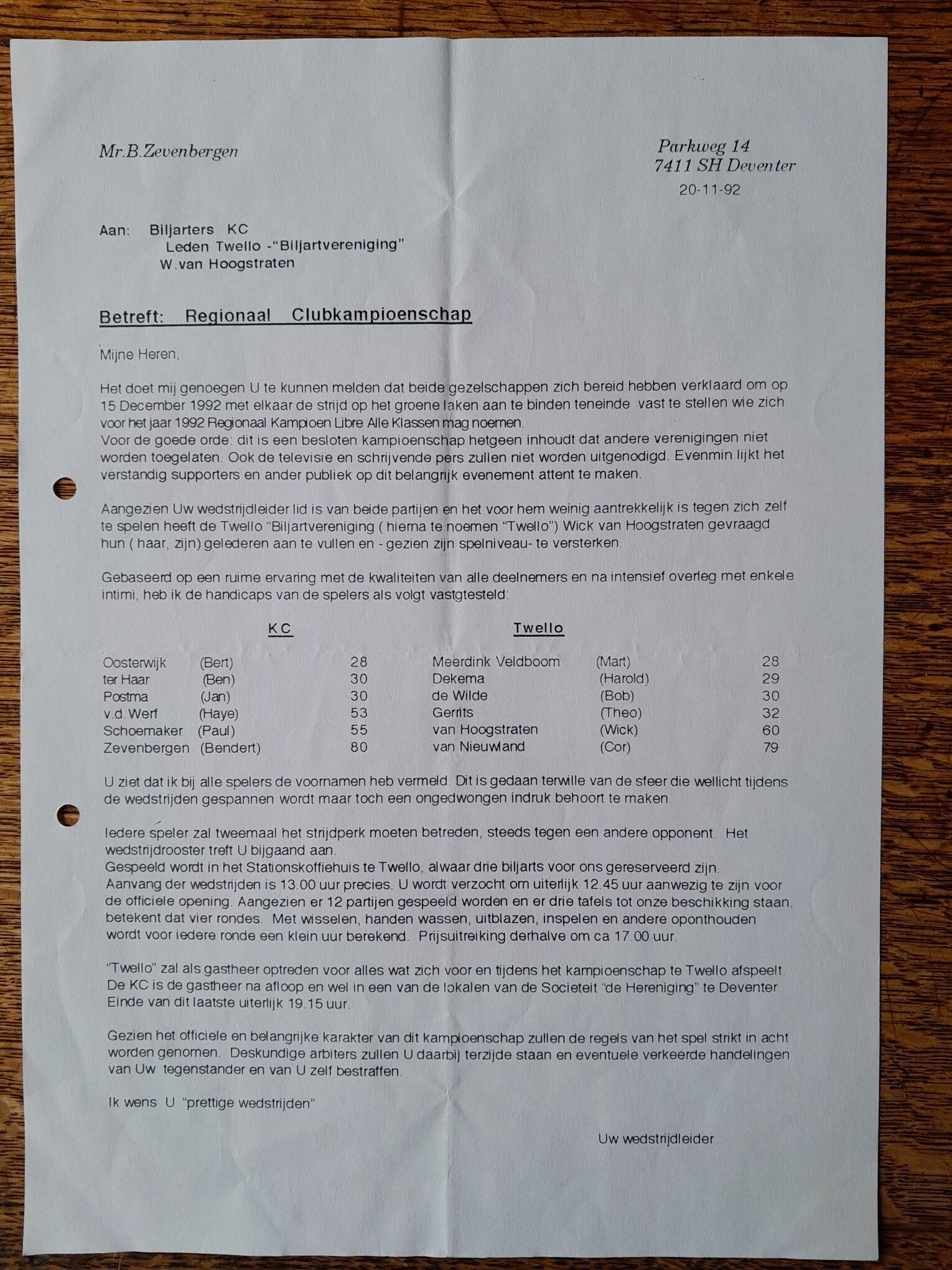 Biljart regiokampioenschap 1992