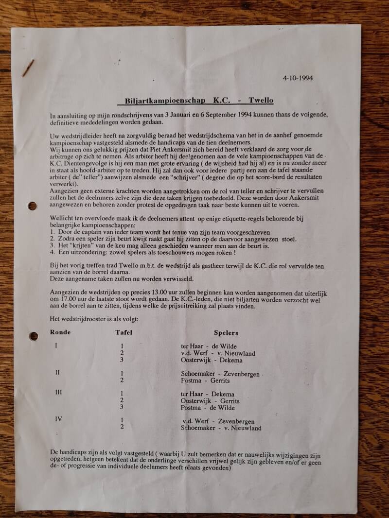 Biljart regiokampioenschap 1994