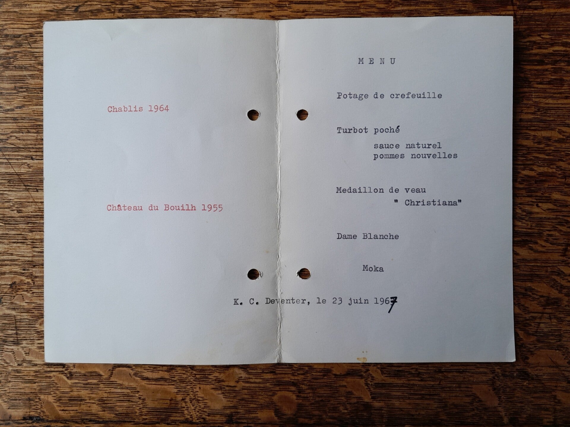 Menukaart 1967 Keizerskroon