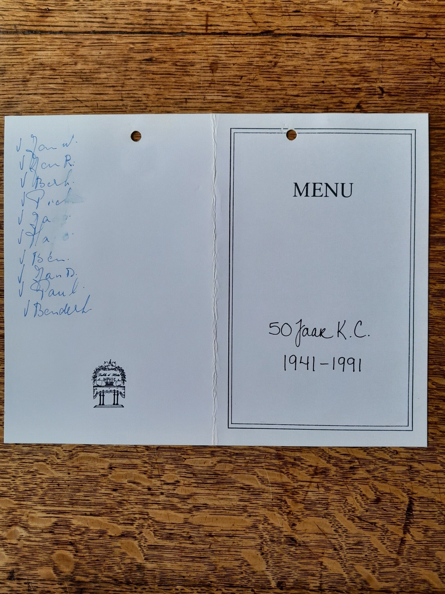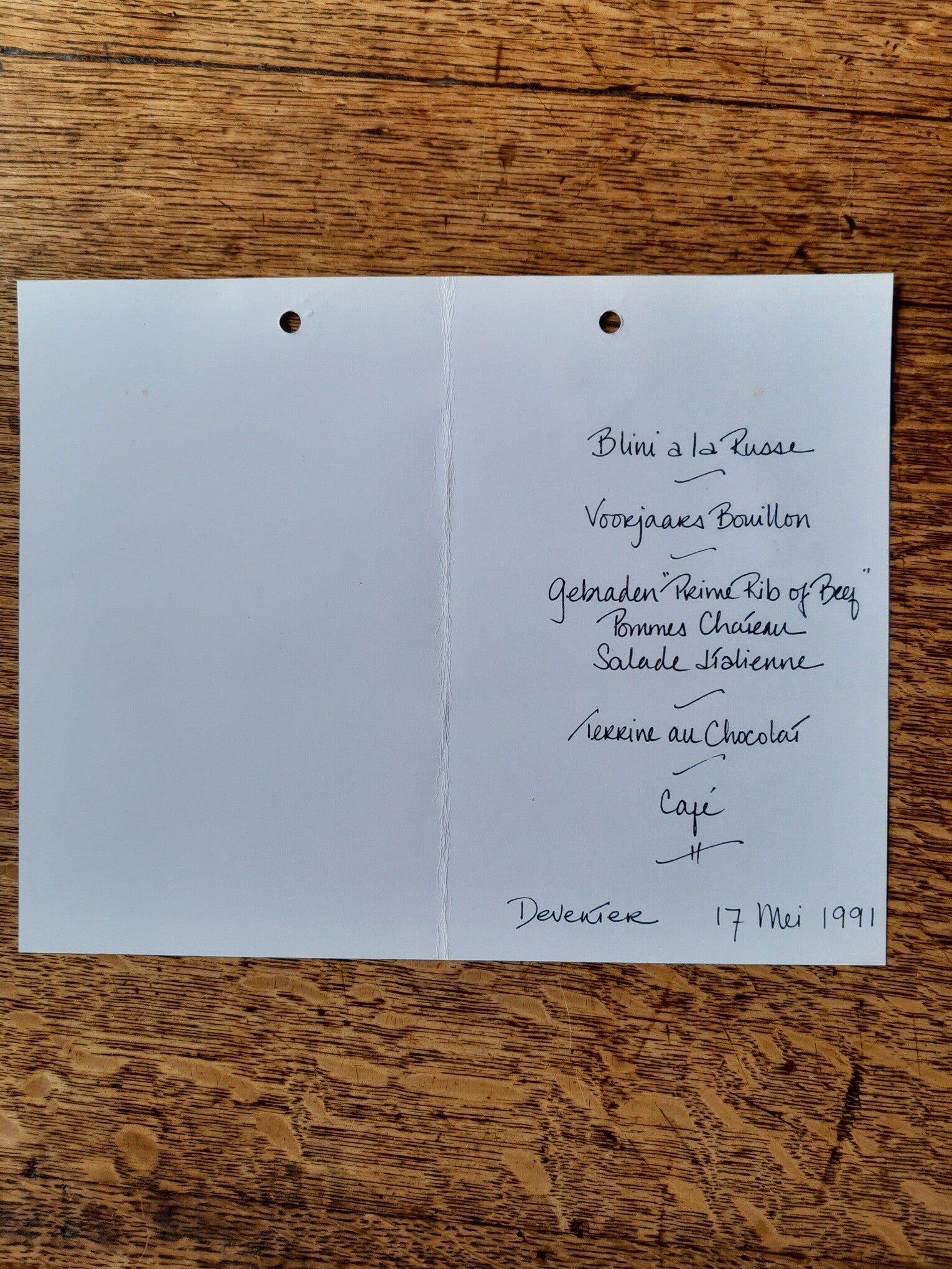 Menukaart 1991 Bekedam