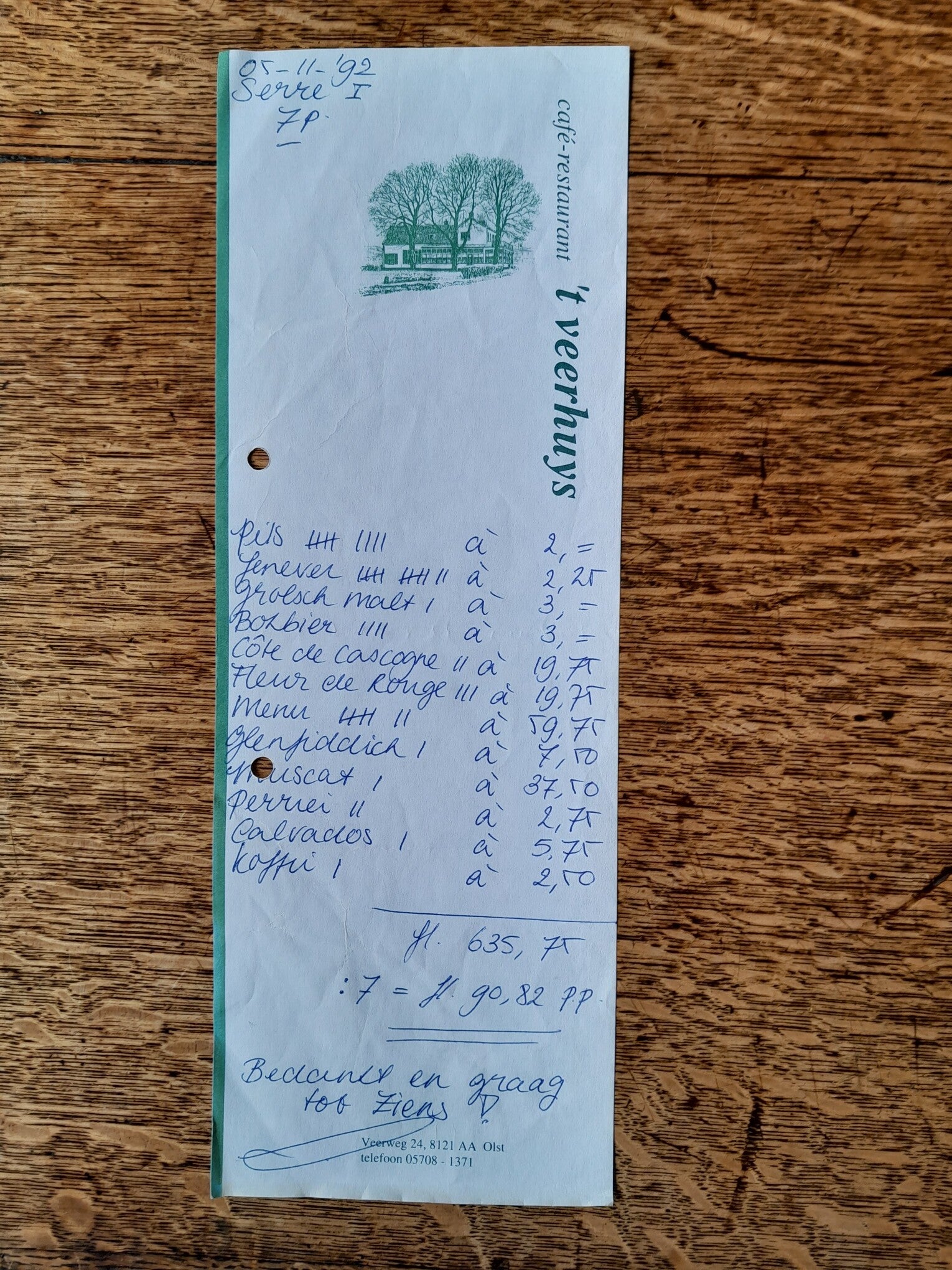 Menukaart 1992 't Veerhuys